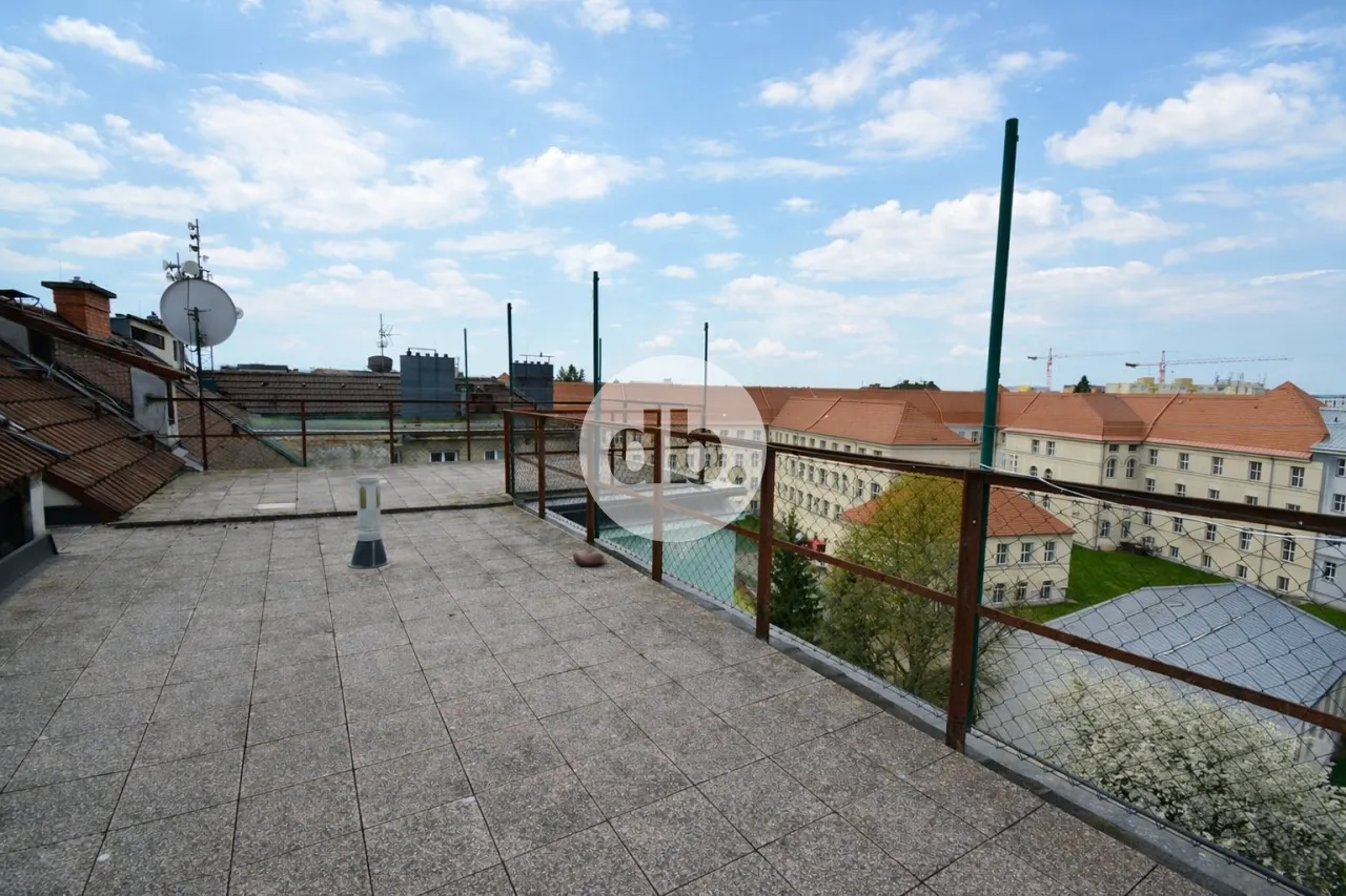 Dům nabízí několik příjemných benefitů a to půdní prostor vhodný k věšení prádla, střešní terasu přístupnou obyvatelům domu a zahradu ve vnitrobloku, ideální pro odpočinek v klidném prostředí.