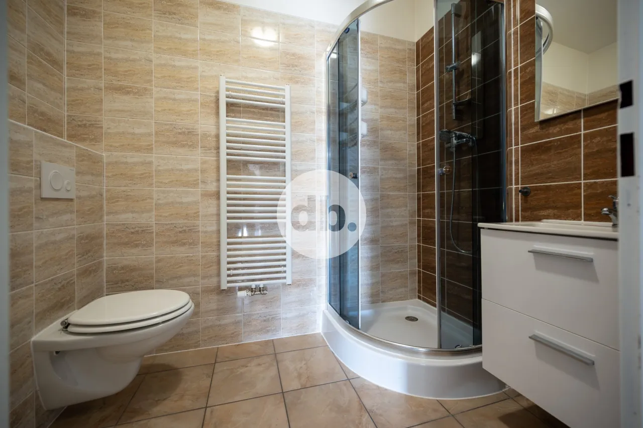 Nabízíme velmi pěkný, moderní a prostorný byt označený číslem 4 s dispozicí 2kk o výměře podlahové plochy cca 50 m2 s vlastním parkovacím stáním u domu. Byt je volný a připraven k nastěhování. V bytě je zakázková kuchyňská linka s myčkou, varnou deskou, troubou, vestavnou ledničkou s mrazákem a digestoří. V ložnici je šatní skříň. Koupelna je vybavena sprchovým koutem, umyvadlem se skříňkou, WC mísou a prostorem pro pračku s možnou nástavbou sušičky. Nájemné činí 12.500,- Kč/měs., paušální platba za služby vč. vytápění 5.000,- Kč/měs. Podmínkou uzavření nájemní smlouvy je úhrada provize RK ve výši 13.000,- Kč a složení vratné kauce ve výši 25.000,- Kč.