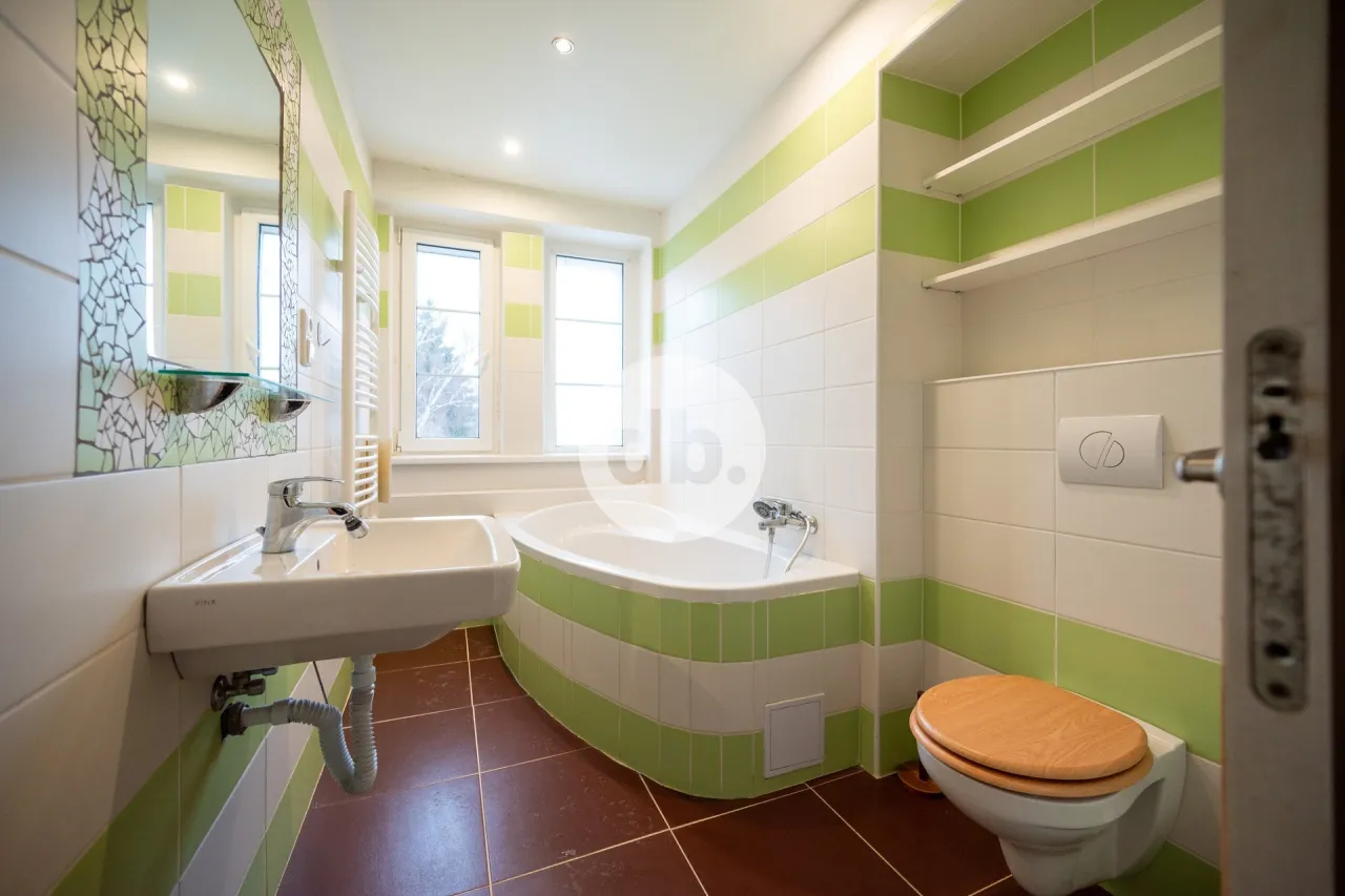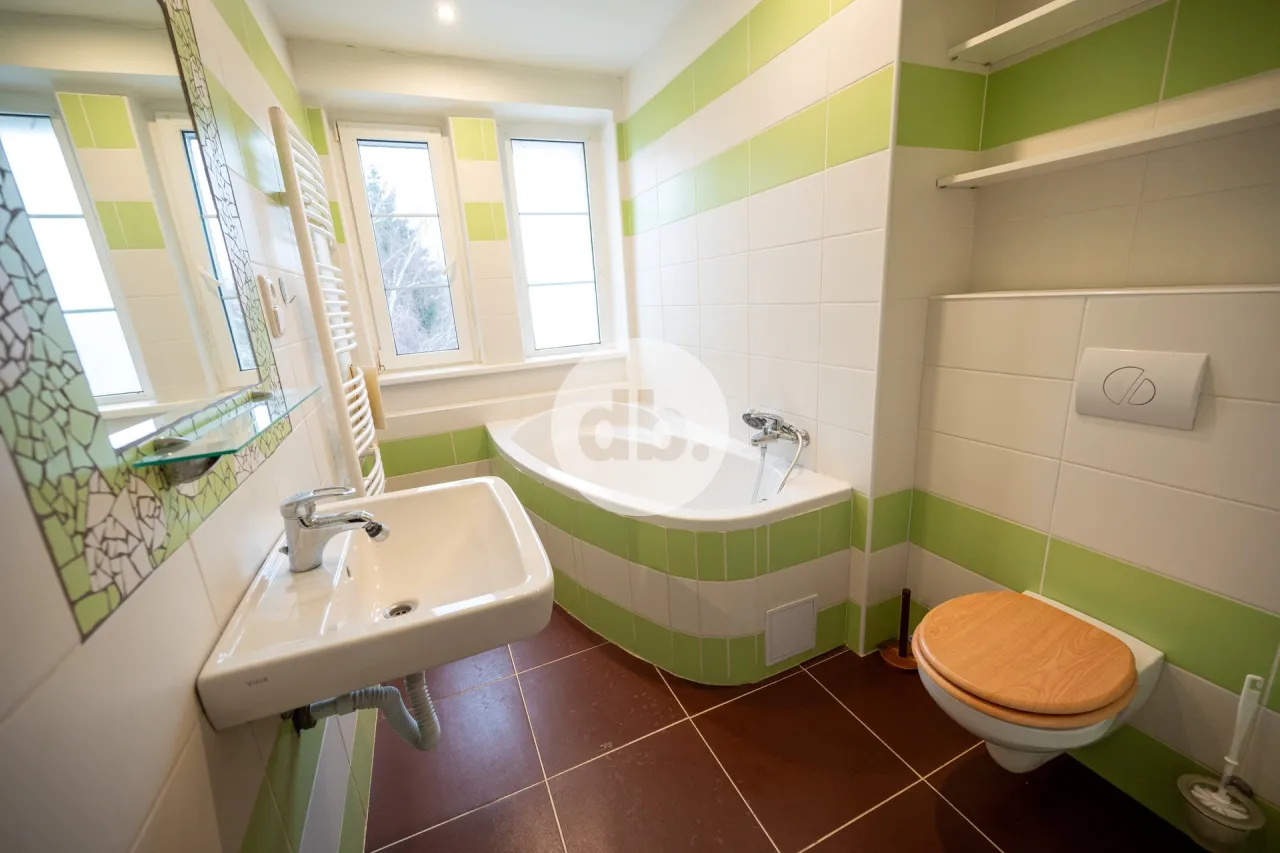 Nabízíme k pronájmu bytovou jednotku s dispozicí 2kk + šatní místnost (možnost využívání jako 3 kk) ve 3. patře cihlového bytového domu v Dalovicích u Karlových Varů. Podlahová plocha bytové jednotky je 49 m2. K bytu náleží suchá a bezpečná sklepní kóje o ploše 3 m2. Byt má plastová okna, kuchyňskou linku s vestavnými spotřebiči včetně myčky nádobí, chladničky s mrazákem. Vytápění a ohřev teplé vody je prostřednictvím nového plynového kotle. Budova, kde se jednotka nachází je zateplena. Jedná se o bezpečný, klidný dům. Výhodou této nabídky je klidná lokalita, možnost parkování na vlastním pozemku patřícím k domu, případně na veřejné komunikaci a možnost využívání pěkné, společné zahrady domu. Nájemné činí 11.255,- Kč/měs., zálohy za služby vč. fondu oprav jsou ve výši 2.784,- Kč/měs., odměrné místo plynu a elektřiny bude po dobu trvání nájemního vztahu převedeno a hrazeno nájemcem. Vratná kauce činí 25.600,- Kč, jednorázová provize RK 12.000,- Kč. Majitel si vyhrazuje právo výběru vhodného nájemce.